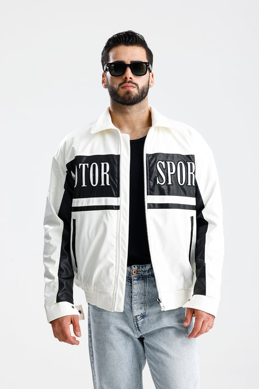 Motor's Clup Premium Bomber Deri Ceket - Beyaz