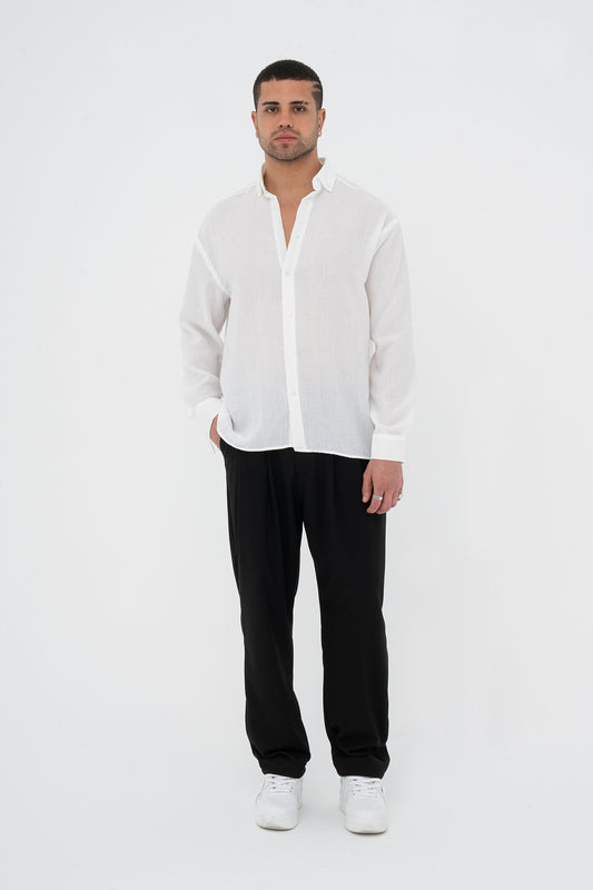 Oversize Pamuklu Keten Gömlek - Beyaz